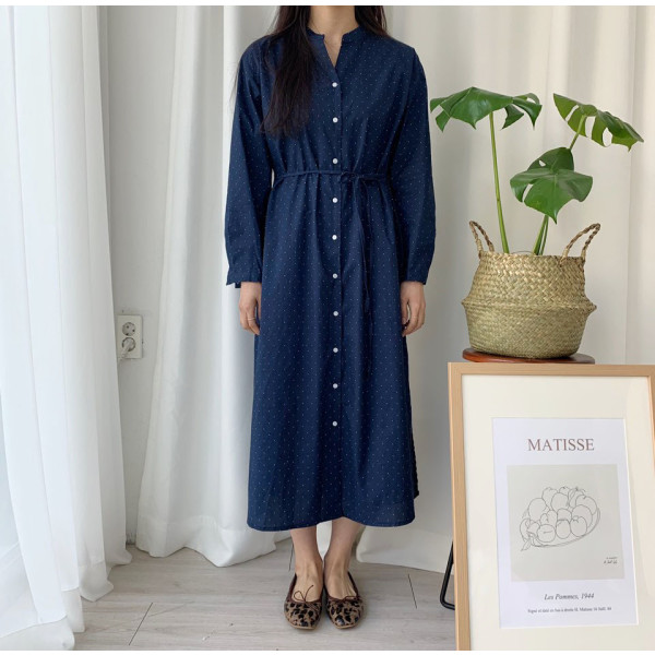 과하지 않은 도트 패턴으로 데일로 입기 좋은 원피스에요.