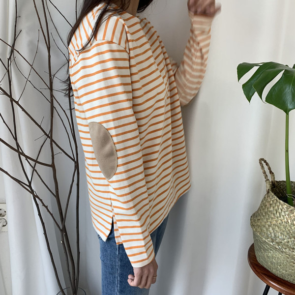 팔꿈치에 패치가 흔할 수 있는 스트라이프티에 포인트를 주었어요.